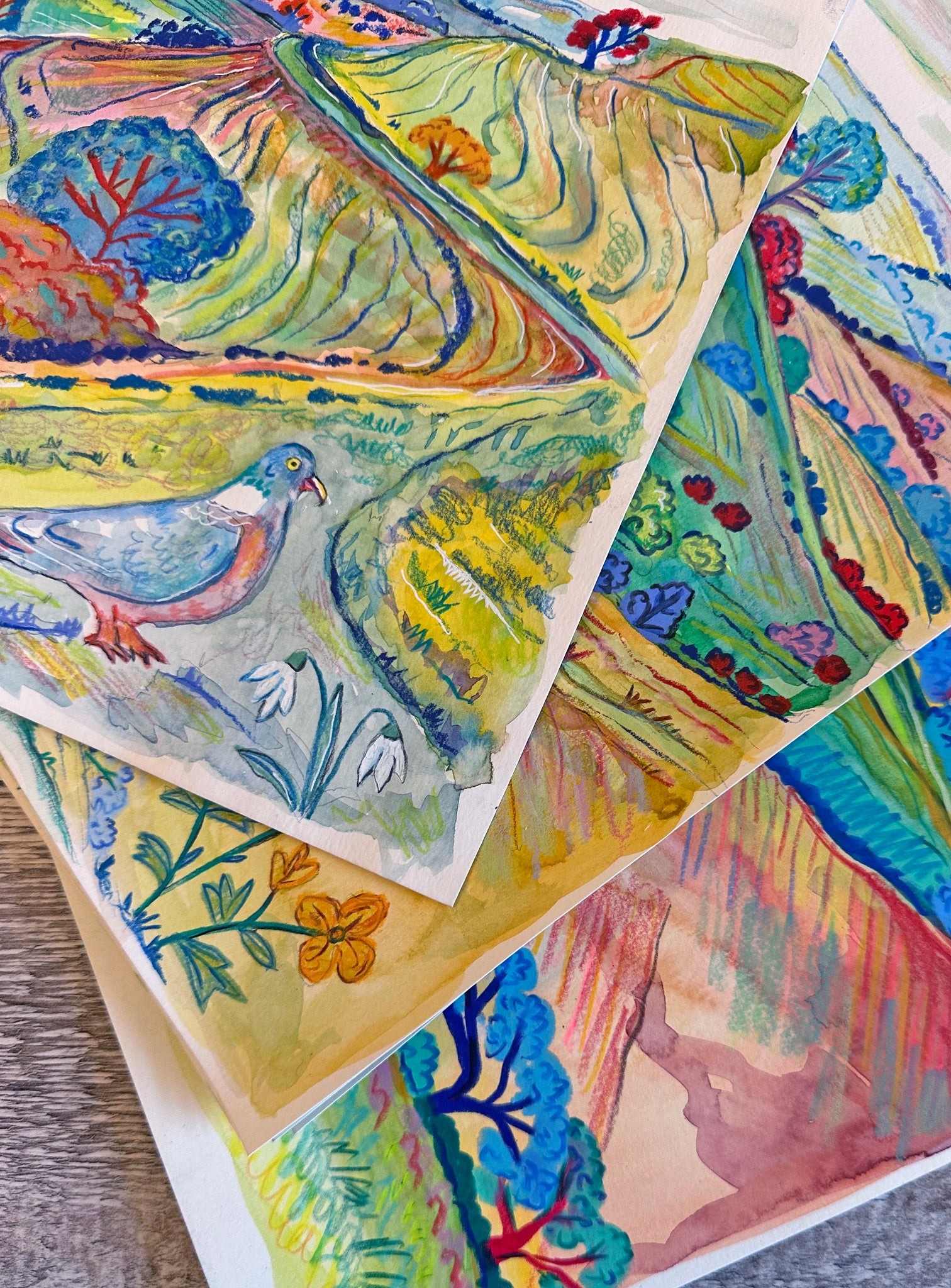 I created this painting using watercolour paints and Caran d’ache neocolor pastels and luminance pencils. These materials are archival and lightfast meaning the colours will not fade if looked after properly. I start by creating a soft watercolour wash for the background, and once this is dry I gradually build up the details with pencils, pastels and Posca markers. This creates a lovely depth and texture to the piece. If you look really closely you can see all the different layers. I love to use bold colours to really capture the essence of the place. These pieces can be preserved properly by keeping them out of direct sunlight and framing them behind filter glass or acrylic. I have used 220gsm smooth heavyweight watercolour paper, which is acid free, and the pictures are then sprayed with a matt varnish fixative designed to preserve your artwork from any smudging or water damage. Your print will come unframed and un-mounted, backed by greyboard and packaged in a recyclable cello sleeve to protect it from any water damage. Your print will be signed and come with an artist certificate of authentication.
